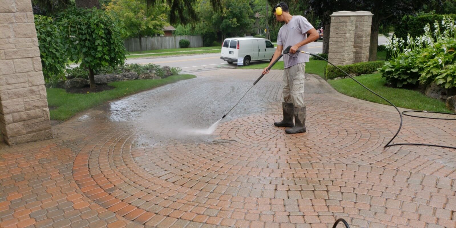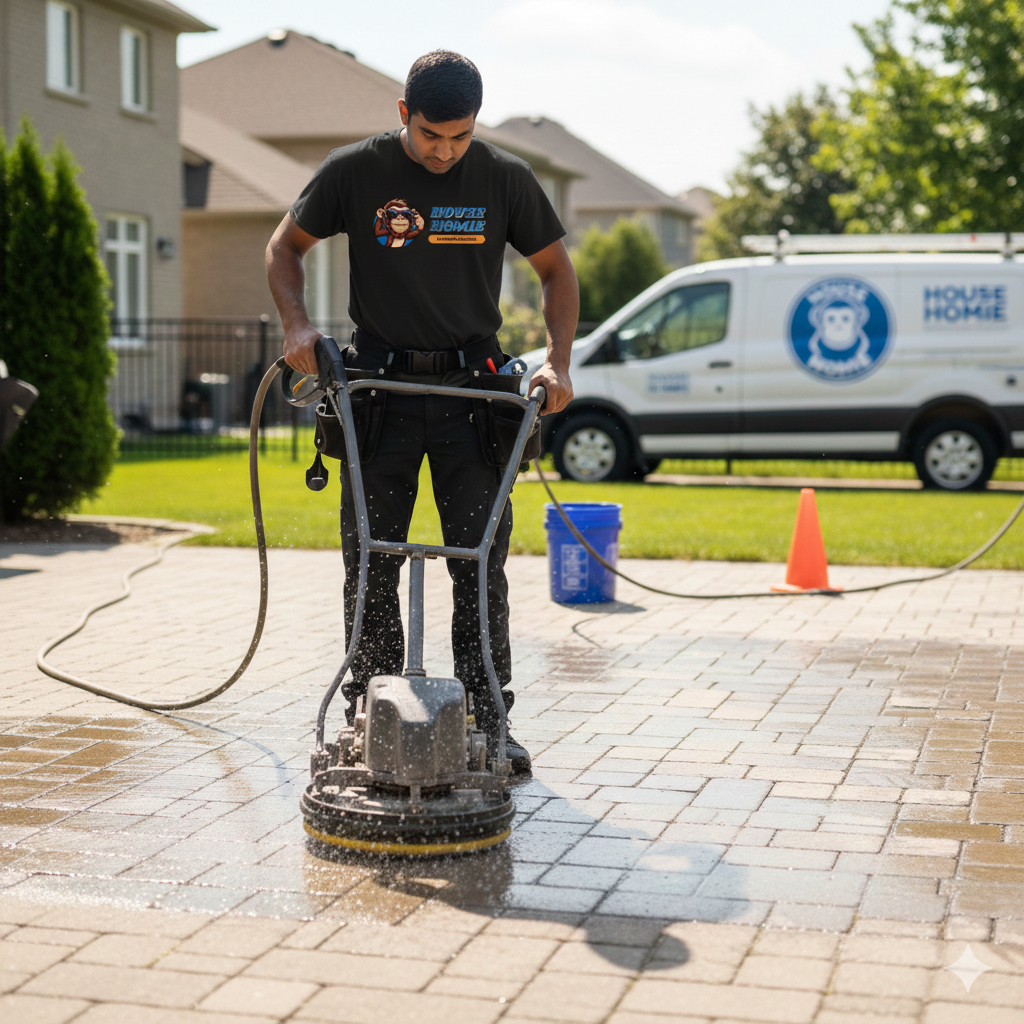 Our interlock cleaning and resanding removes grime and weeds, locks pavers back in place, and refreshes the look of your driveway or patio.